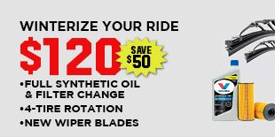 Get a full synthetic oil change & filter, tire rotation and new wiper blades for only $120!