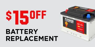 Save $15 off battery replacement with installation.
